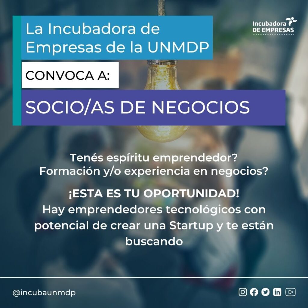 Está abierta la convocatoria a socios y socias de negocios con espíritu emprendedor, formación o experiencia en negocios, que deseen sumarse con su emprendimiento a la Incubadora de Empresas de la Universidad de Mar del Plata, para potenciar su estrategia empresarial a través del asesoramiento.