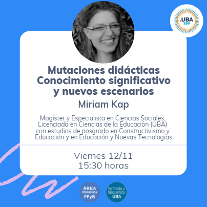 En el marco del evento titulado «Enseñanza universitaria, pandemia y después…» la licenciada en Ciencias de la Educación, Miriam Kap, estará ampliando sobre estas nuevas transformaciones en la educación superior a través del impacto de la tecnología, con una charla titulada «Mutaciones didácticas. Conocimiento significativo y nuevos escenarios». El evento se realizará vía zoom el viernes 12 de noviembre a las 15:30 horas.