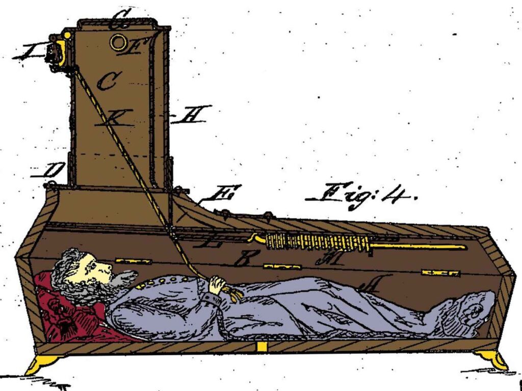 Los siglos XVIII y XIX se caracterizaron por un miedo particular, las violentas epidemias habían potenciado el terror de ser enterrado vivo. Este miedo se vio cristalizado en múltiples obras literarias de la época. El entierro prematuro, de Edgar Alan Poe, es solo un ejemplo de ellas. El mismo George Washington, habría pedido antes de morir en 1799, que se esperase durante al menos tres días tras su muerte para enterrarlo. Y es que, en el siglo XVIII, la medicina no estaba tan avanzada como hoy en día por lo que ciertas afecciones como la narcolepsia eran motivo para considerar muerto al paciente. Encontramos numerosos casos de personas enterradas vivas, algunas con la suerte de ser rescatadas y otras, como Thomas Kempis, cuya tragedia se descubrió al momento de exhumar sus restos previo al proceso de beatificación.