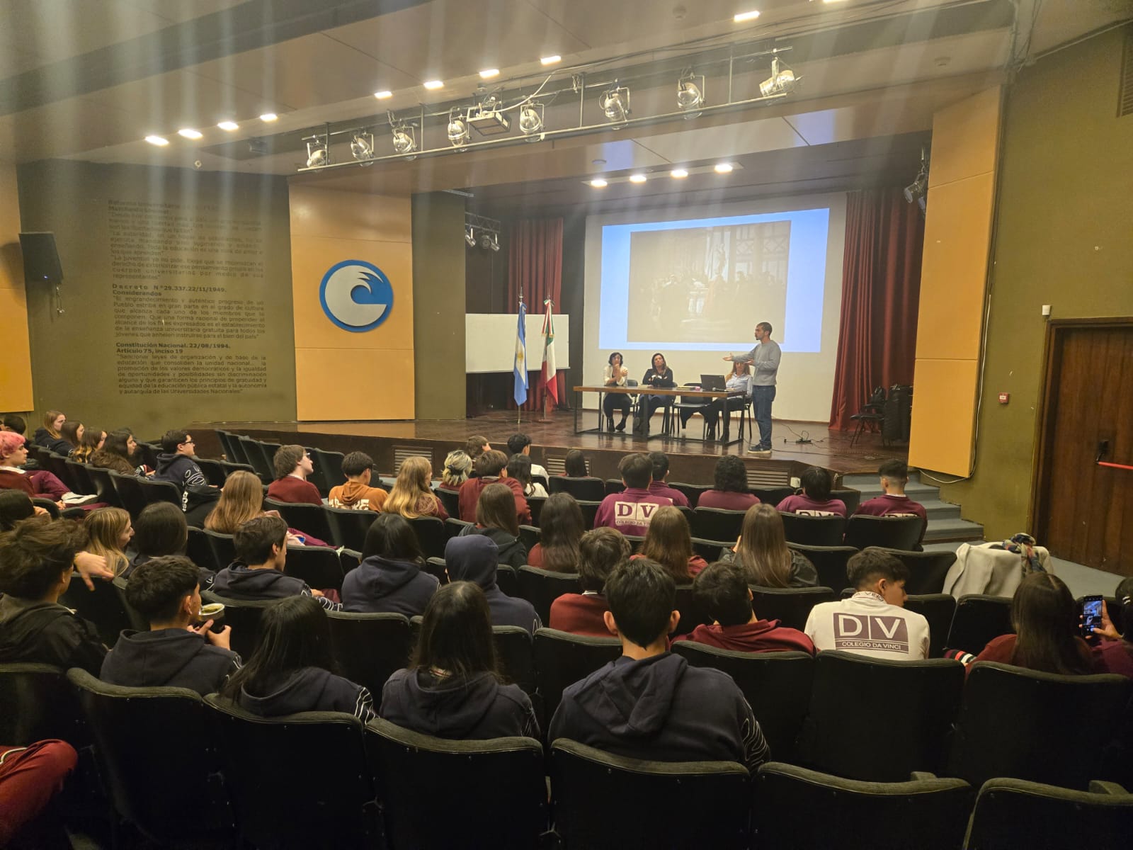 En relación con la experiencia, el docente Lucas Paoli destacó: “Hoy trabajamos con la jornada de la Nacional Italiana, es decir, la jornada de la investigación italiana en el mundo y vinimos con un grupo de estudiantes de quinto y sexto año de la secundaria del Colegio Da Vinci, una escuela que dicta el idioma italiano desde jardín hasta secundaria y han expuesto tres docentes investigadores del departamento acerca de sus investigaciones desde el lado de la psicología, desde la historia y además desde la inmigración italiana”.